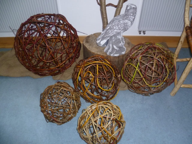 Die Rasseltechnik erfordert etwas Übung und Geduld. Es kann von Vorteil sein, wenn schon Erfahrung im Umgang mit Weide besteht, ist aber keine Voraussetzung. Hauptsache Spaß und Geduld sind dabei, dann entstehen kleine Decotropfen und Windlichgter am Stock zum in die Erde stecken. Stöcke können gerne mitgebracht werden. Ca 2 bis 2,5 cm Durchmesser, Länge nach eurem Gusto.
